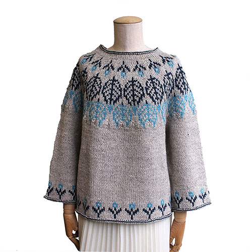 衿ぐりから編み下げる、とじはぎの無いトップダウンセーター。