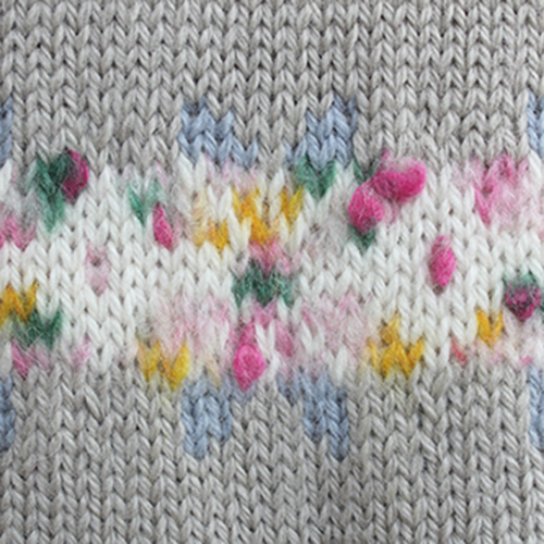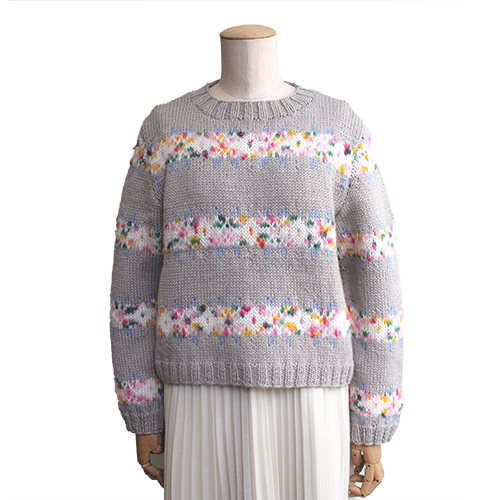 カラフルな糸を編み込み模様の効かせ色にしたボーダープル。