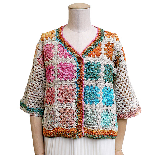 移りゆくグラニーモチーフのカラーリングは、1本のグラデーションヤーンが魅せる七変化。