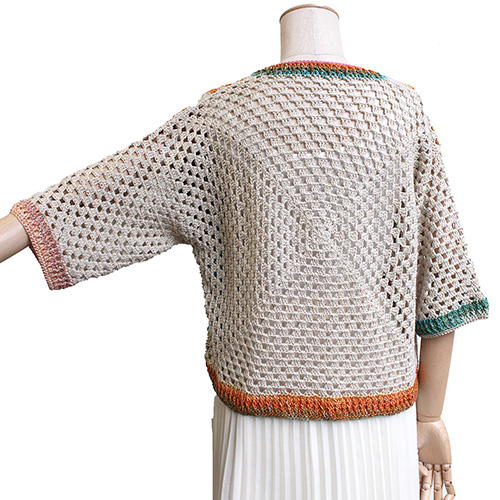 単色で編むバックスタイルは1枚のビッグモチーフになっています。