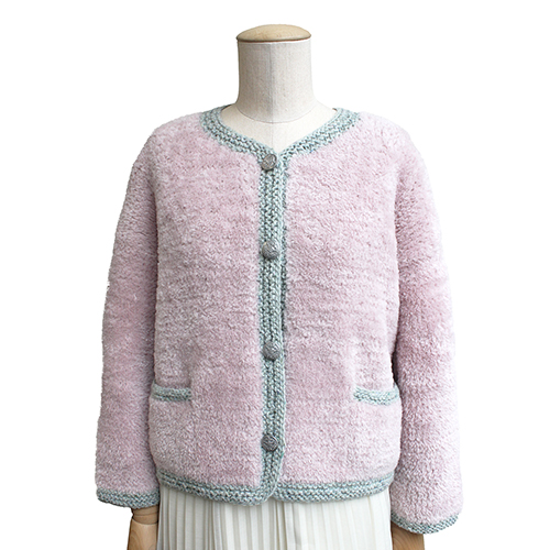 シャネル風カーディガンをファンシーヤーンでチャーミングに表現。
