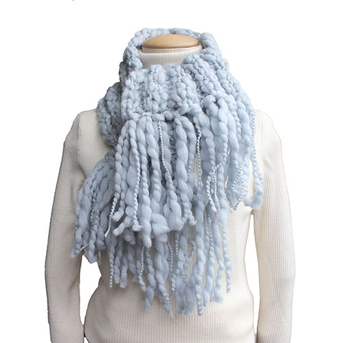 素材の凹凸をいかしたシンプルなゴム編みのマフラー フリンジを付けたら、それはまるでクリーミーなお菓子のよう!
