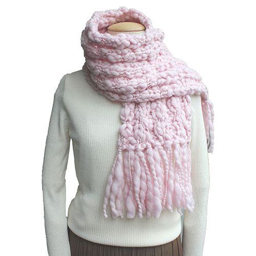 素材の凹凸をいかしたシンプルなゴム編みのマフラー フリンジを付けたら、それはまるでクリーミーなお菓子のよう!