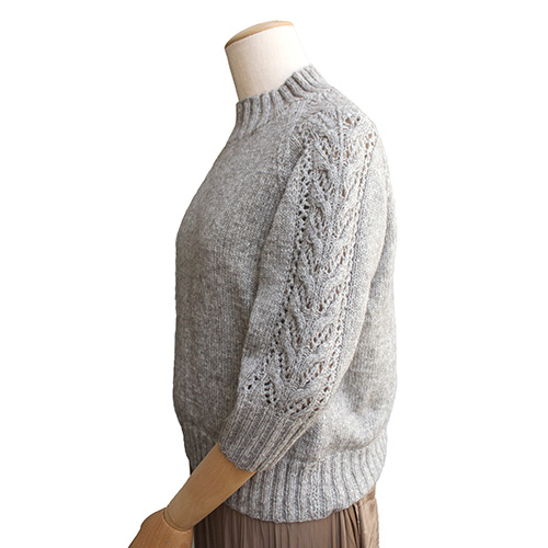 参考作品の、8玉で出来る「袖レースセーター」の編み図付