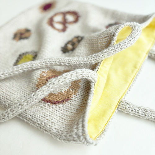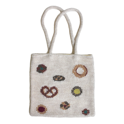 一つ一つのクッキーに変化を持たせるために刺繍を加えていますが、使用するラメ糸はネップがあるので、編み地に通す際には垂直に糸を引きましょう