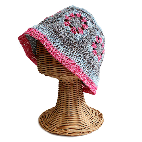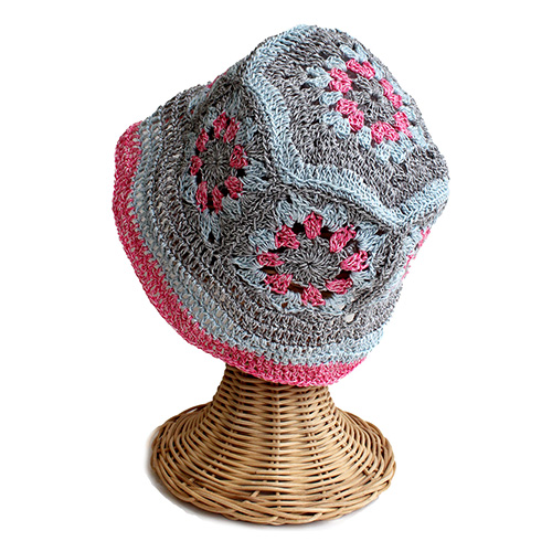 モチーフのハットは、素材の持つ張り感が形をきれいに保ってくれるヘンプ入りの糸で編んでいます。