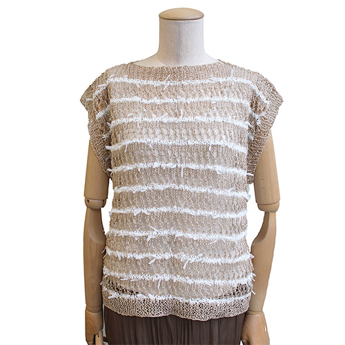 前身頃には質感の違うひらひらが可愛いホワイトの糸をストライプにして爽やかなアクセントに。