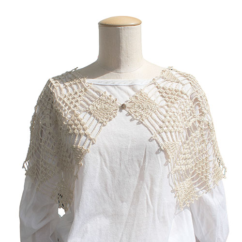 シンプル服に合わせて楽しむレーシーカラーは、ふわりと肩を覆う大き目サイズがポイント。