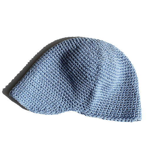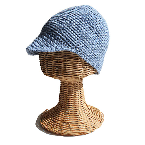 細編みでぐるぐると編むキャップで、夏の眩しさをシャットアウト。