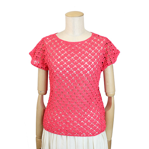 夏らしいジューシーなカラーが魅力のイタリー糸のセーターです。