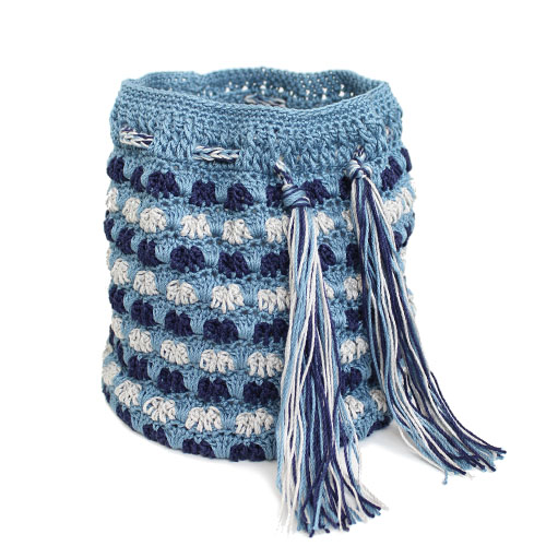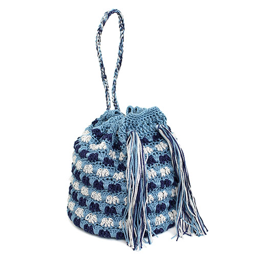 コンパクトな幾何学模様のかぎ針編みバッグは、この春夏のトレンド!ブルー系・モノトーン系、どちらもおしゃれな配色です。
