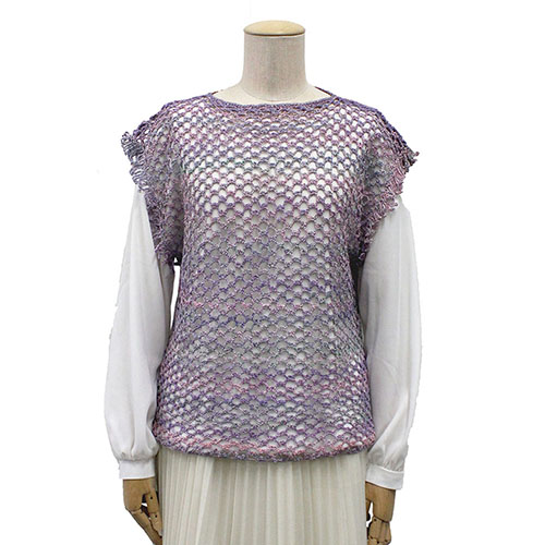 ネット編みのシンプルなボディの袖口には、フリンジフリルがほんのり甘さを添えてくれます。 美しい色の流れを味わいながら編み進めてください。 素 材:レーヨン39% コットン26% アクリル23% ラミー6% リネン6% 使用針:かぎ針5/0号 サイズ:胸囲100cm 着丈52cm ゆき丈28cm *こちらの作品は書籍には掲載されておりません。 * 同品種(リコルド)での、お色変更も可能です ご希望の場合は、コメント欄にお色変更の詳細を入力してください(在庫がある色に限ります)